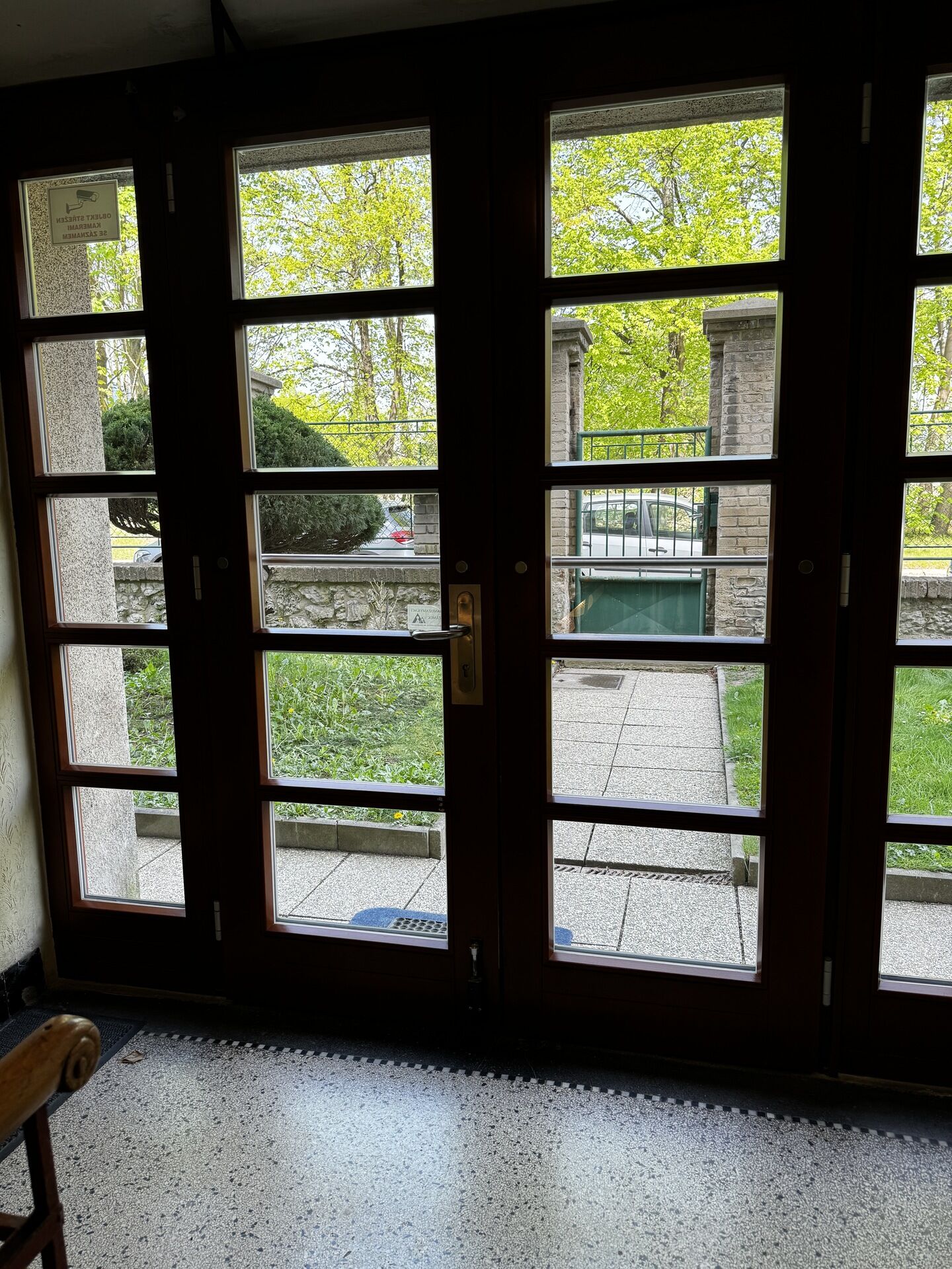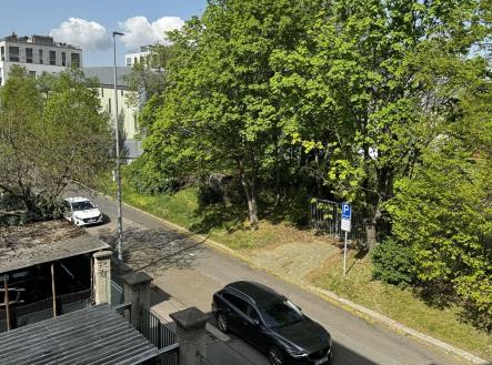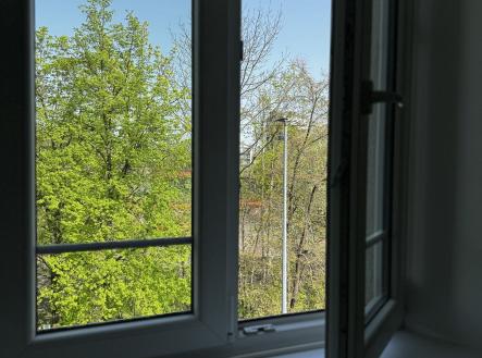 Okna bytu směřují na severní stranu, do ulice, která je díky velkým vzrostlým stromům krásně zelená, klidná a ničím nerušená. Je tak zajištěno opravdu pěkné bydlení v těsné blízkosti veškeré občanské vybavenosti, přitom v zeleni a klidu. Parkování před domem. V mezipatře je možné využívat balkón.
