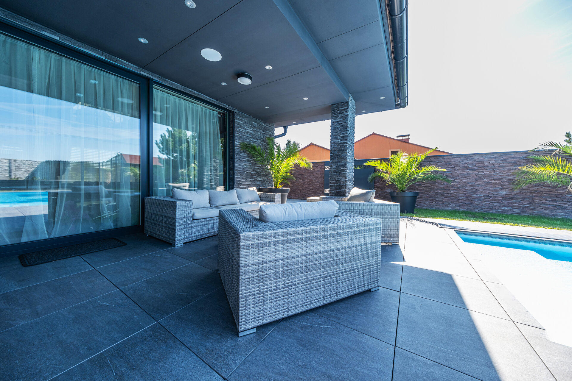 Vítáme Vás v prostorách exkluzivní vily nesoucí název Elements. Tato vila voní ještě novotou, byla kolaudována v létě v roce 2022 a z ulice byste jen těžko odhadovali, co ukrývá za svými branami.