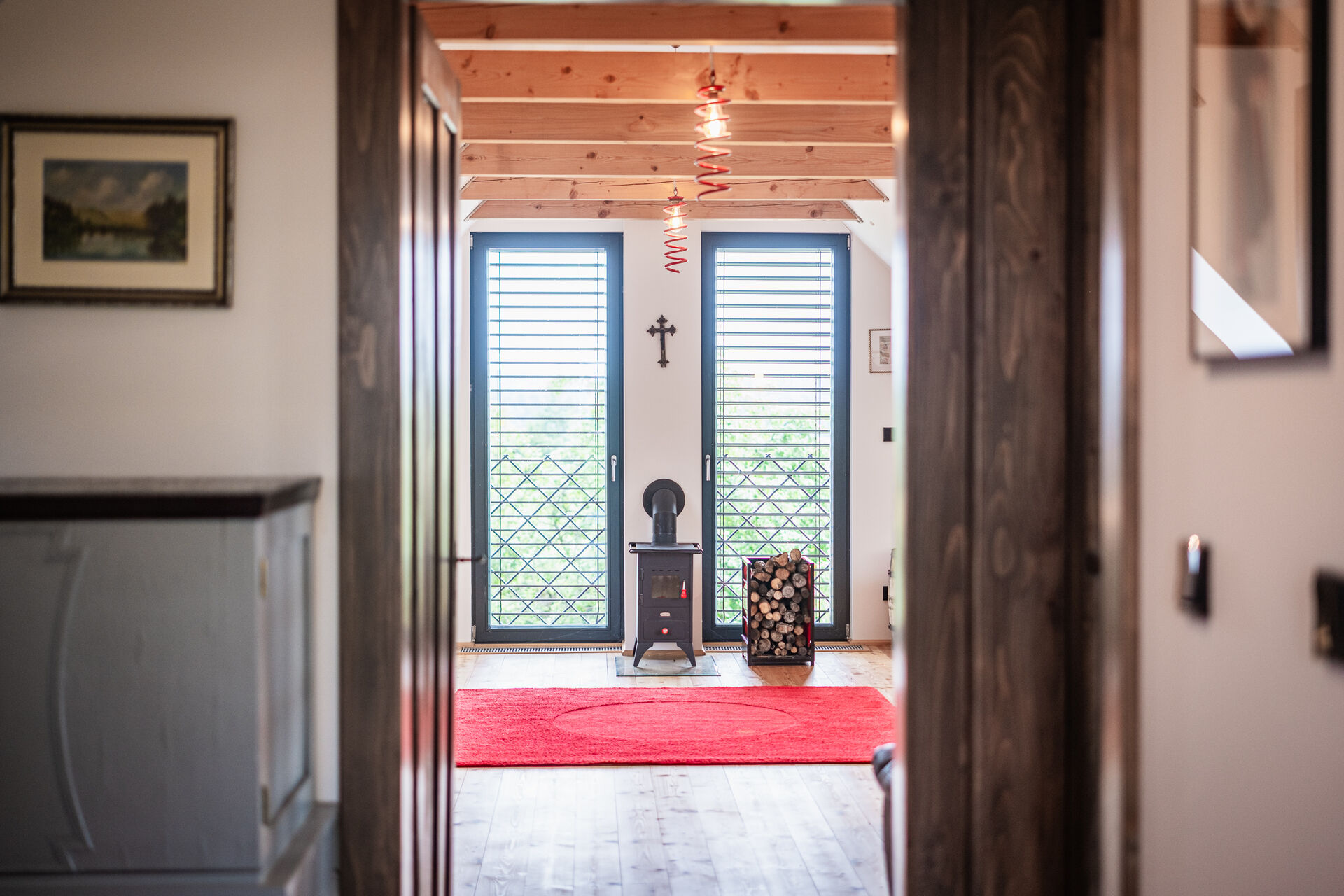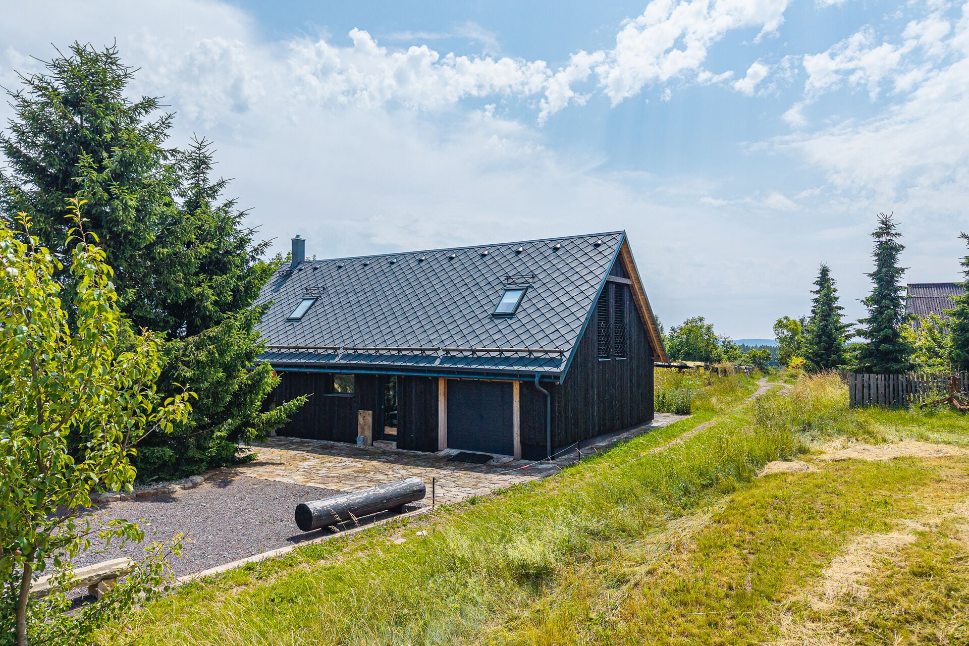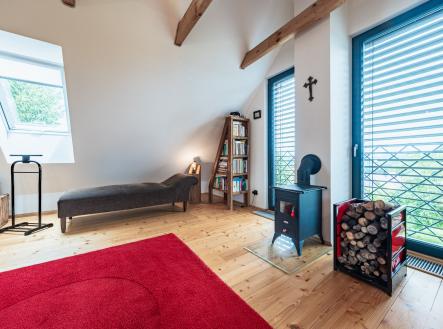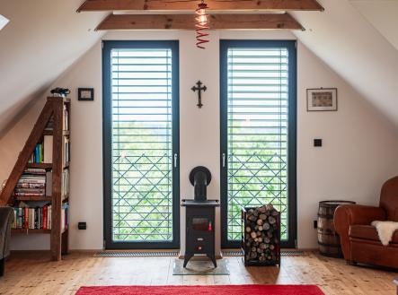 • Venkovní žaluzie, interiéry z masivu, důraz na detail, vkusně upravený pozemek.