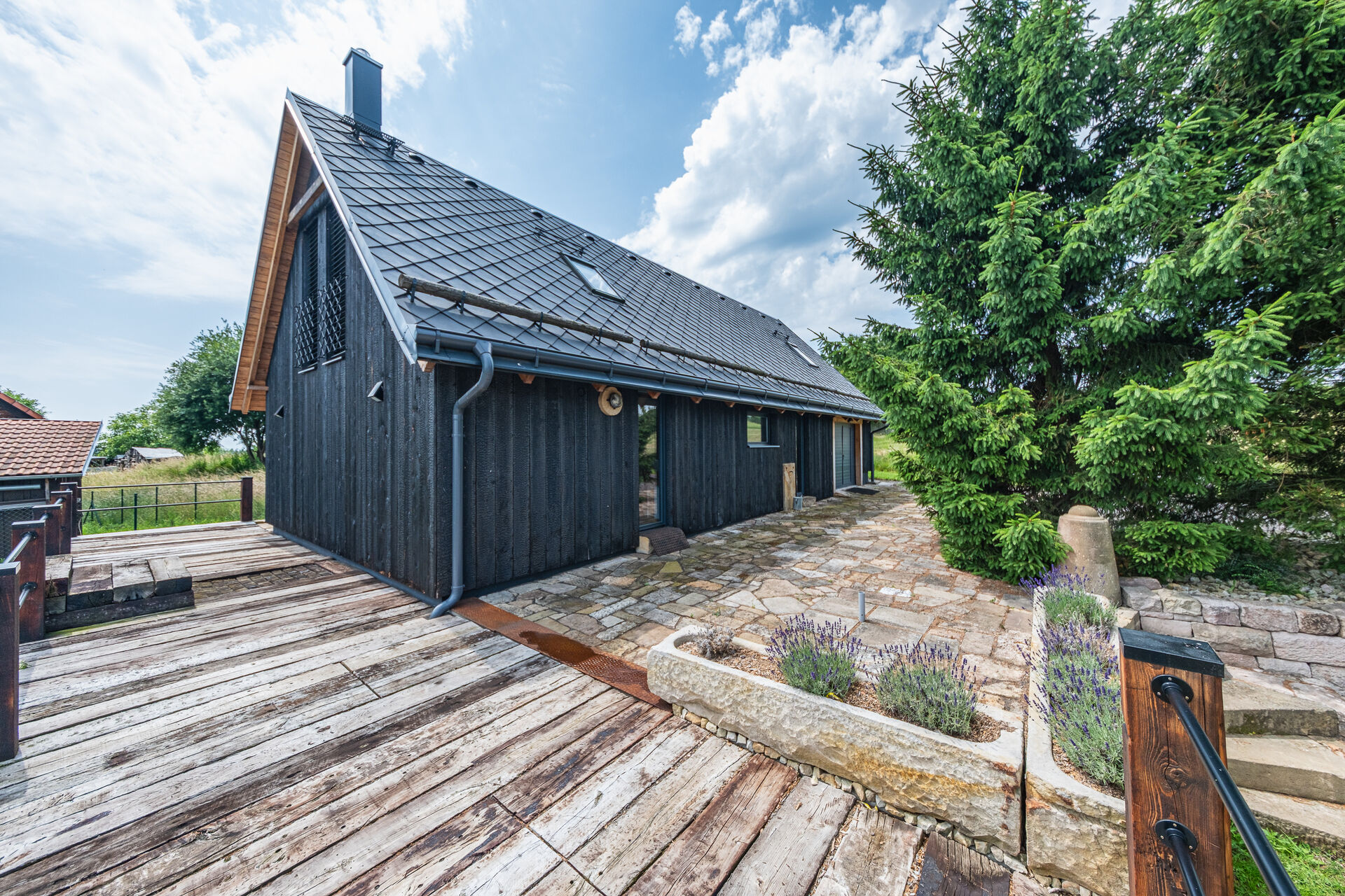 • Exteriér z opalovaného dřeva v japonském stylu – unikátní vzhled s vysokou estetickou hodnotou.