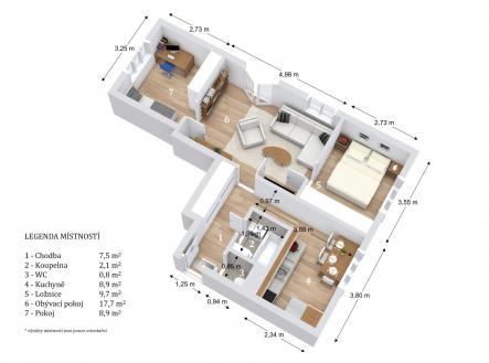 - Celková podlahová plocha:57 m2