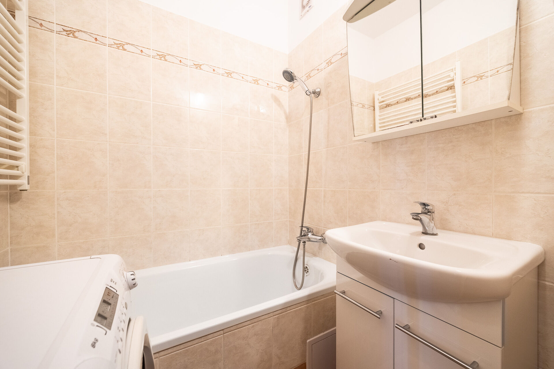 Byt má vybavenou kuchyň, která nabízí dostatek prostoru pro pohodlné vaření. Samostatná toaleta, koupelna s vanou a prostorem na pračku zajišťují maximální komfort a praktičnost. Dětský pokoj, ložnice a prostorný obývací pokoj poskytují dostatek místa pro celou rodinu a umožňují vám vytvořit si domov podle svých představ.