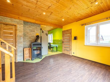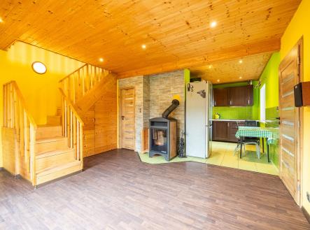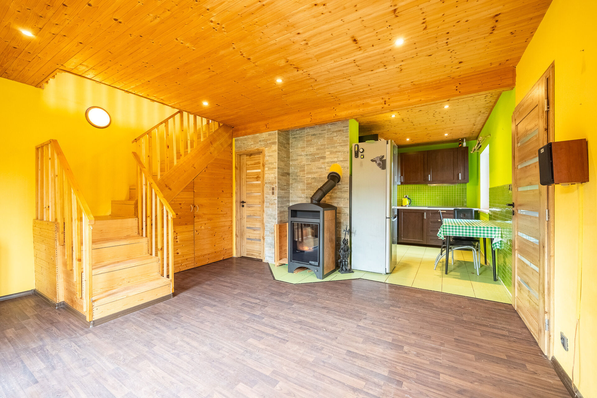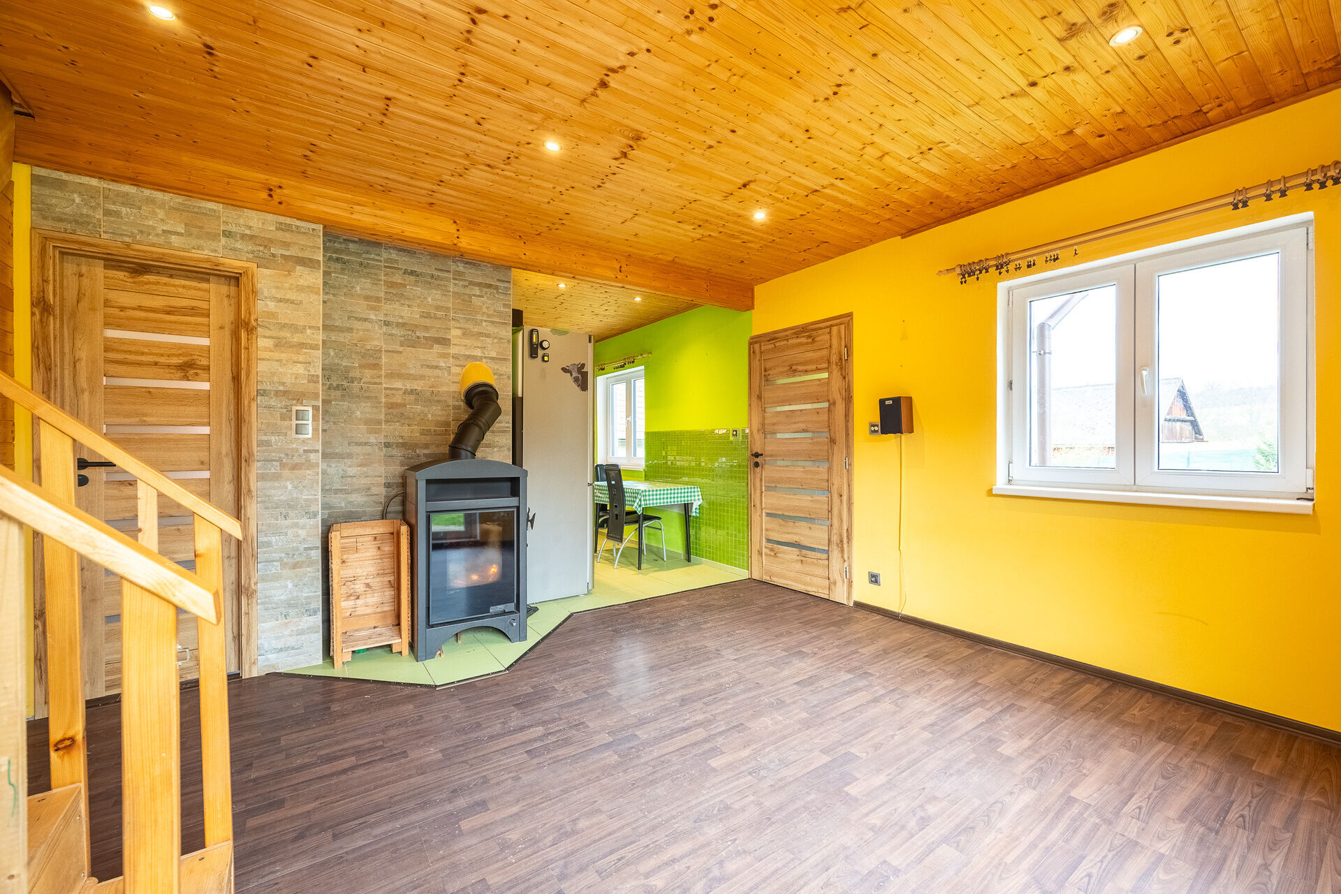 Domek je postaven ze zděného materiálu a nabízí moderní vybavení, včetně plastových oken, elektroinstalace v mědi a rozvodů vody v plastu. Topení je zajištěno krbovými kamny s výměníkem, které efektivně rozvádějí teplo do radiátorů, a ohřev vody je řešen bojlerem napojeným na kamna i elektřinu.