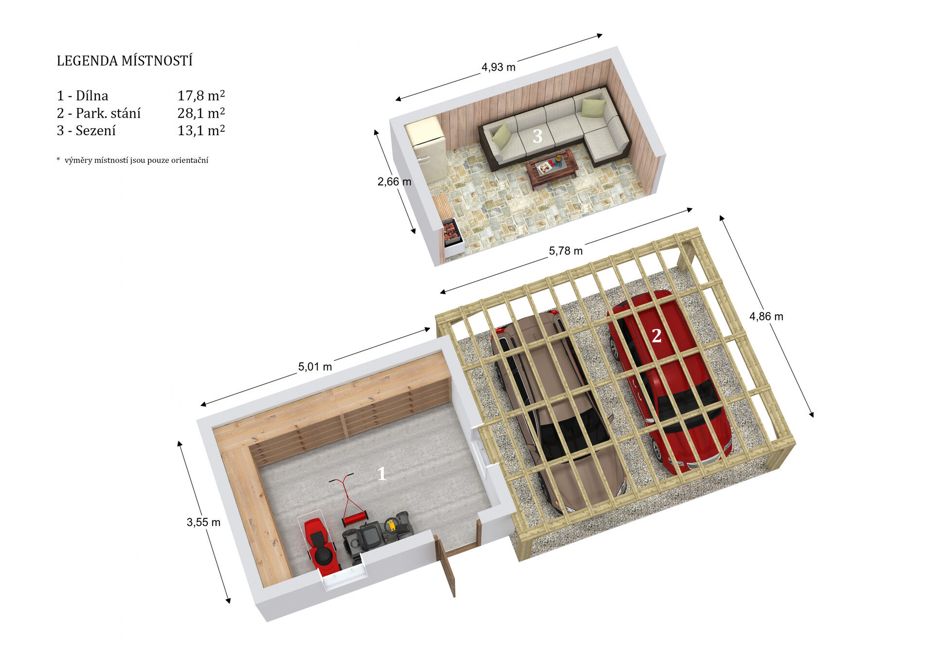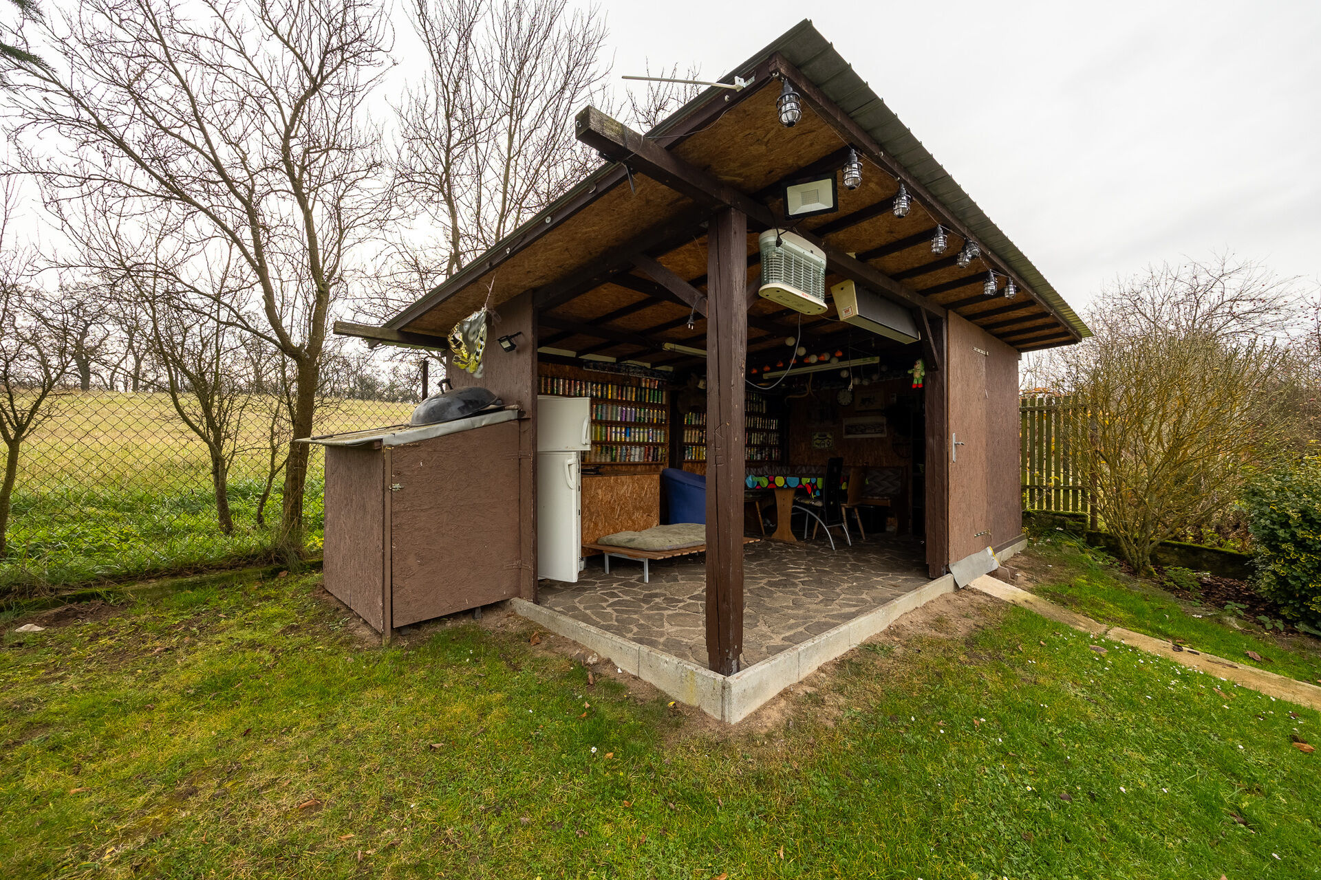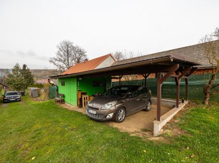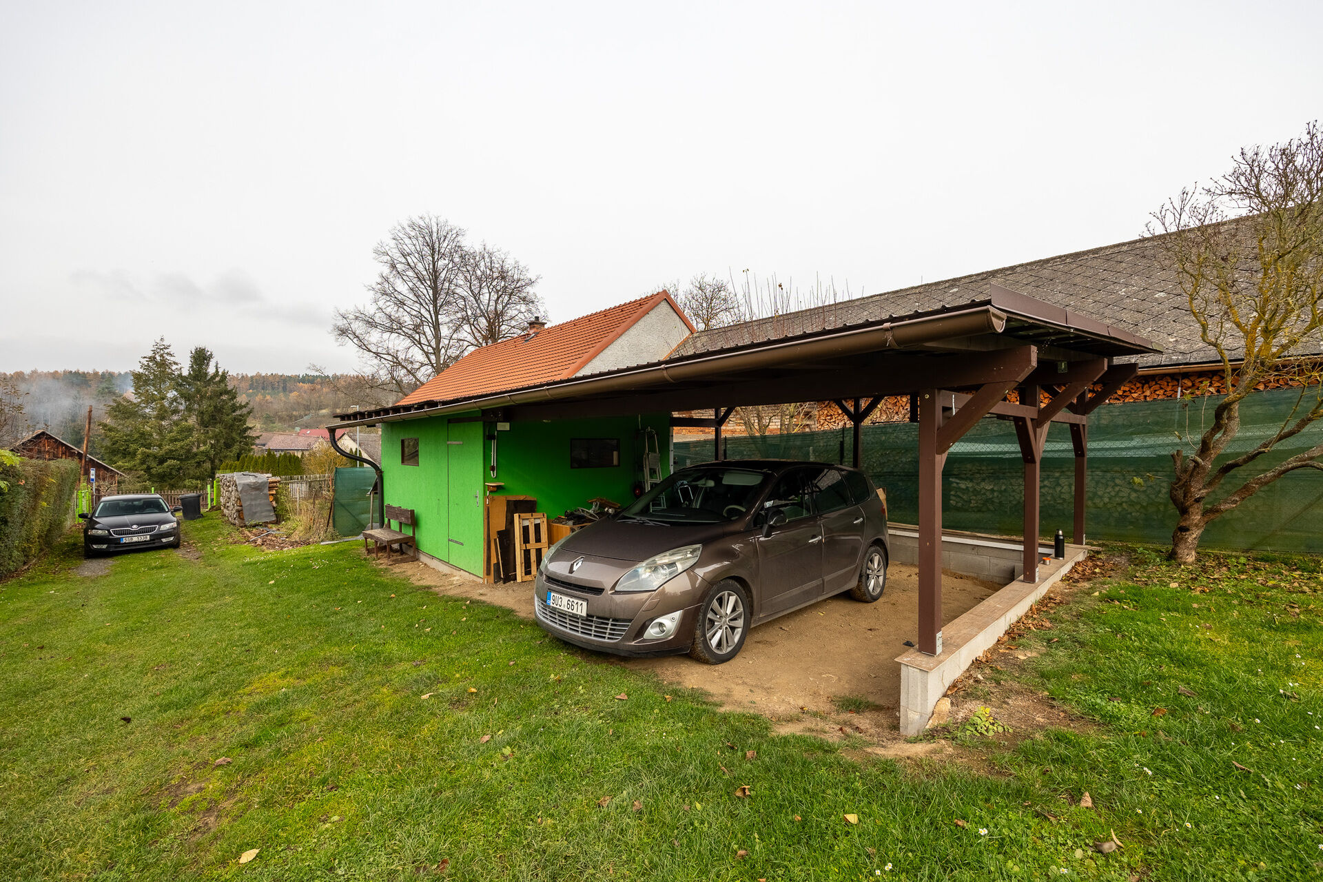 Součástí pozemku je také zastřešené parkování pro dvě auta a prostorná dílna, ideální pro všechny vaše projekty a koníčky.