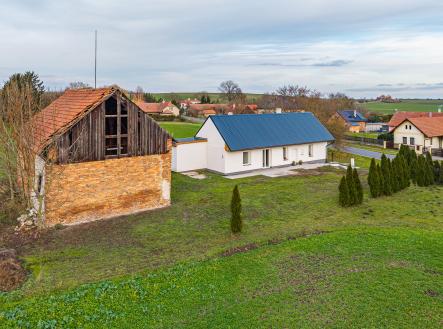 Dům je postaven na prostorném pozemku o velikosti 734 m², což nabízí dostatek místa pro různé aktivity. Můžete zde vytvořit krásnou zahrádku, uspořádat rodinná grilování nebo si užívat klidné chvíle na čerstvém vzduchu. Pro milovníky zvířat nebo hobby zahradníky je tento prostor ideální. Navíc, na pozemku se nachází také stodola, která poskytuje skvělé možnosti pro rekonstrukci nebo přestavbu na ateliér, dílnu nebo skladovací prostory dle vašich potřeb.