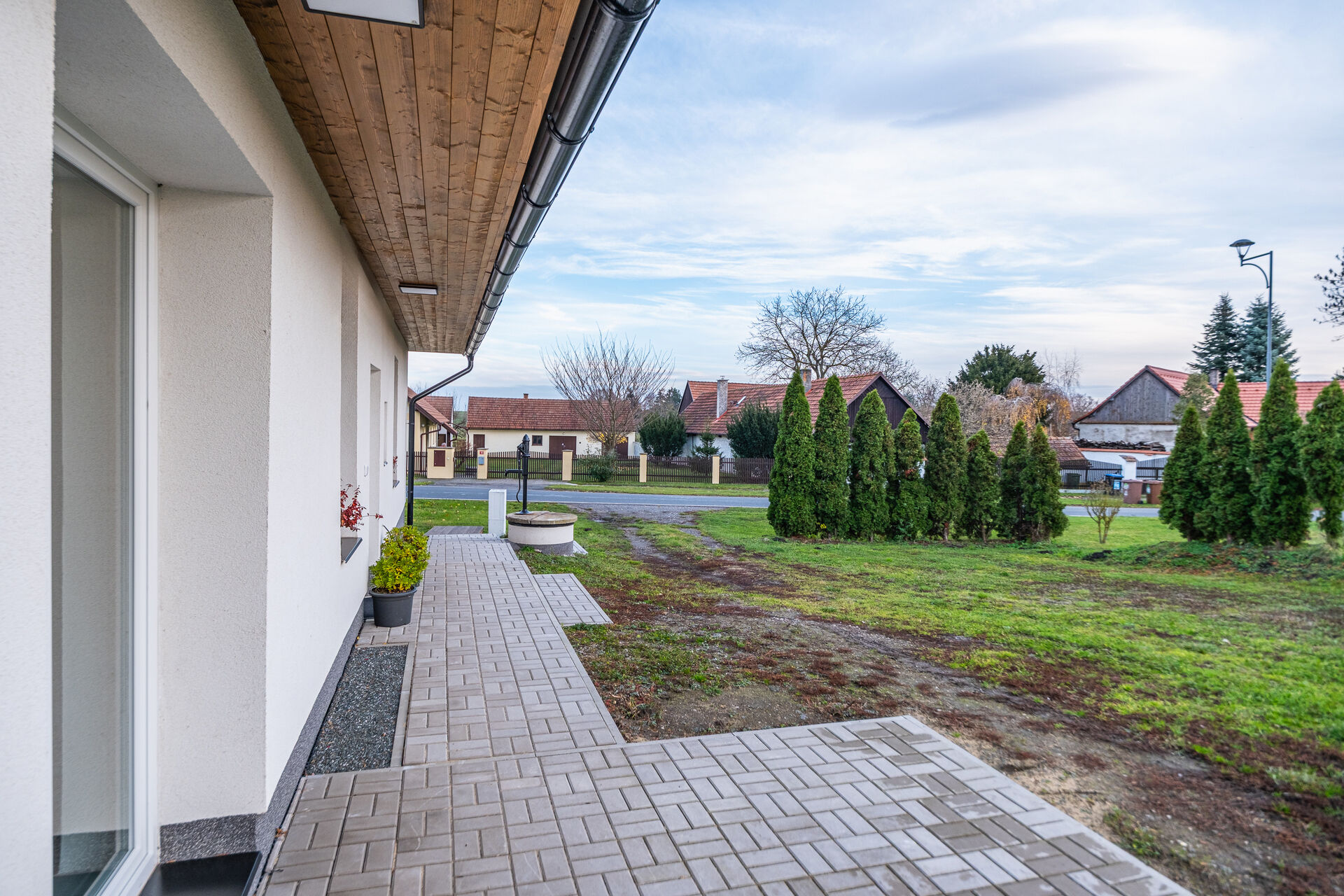 Další výhodou tohoto domu jsou plastová okna s dvojskly, která zajišťují skvělé tepelné a zvukové izolace, což přispívá k energetické úspornosti a celkovému komfortu bydlení.