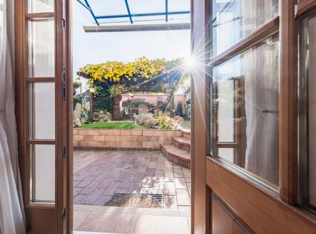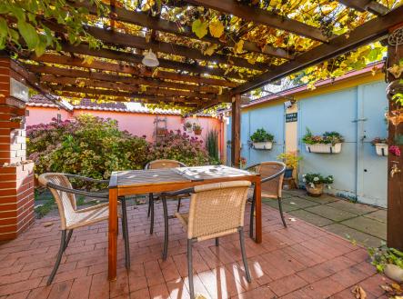 U domu je nádherná udržovaná vzrostlá zahrada, která v sobě ukrývá zahradu s terasou, posezením a garážemi.