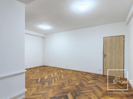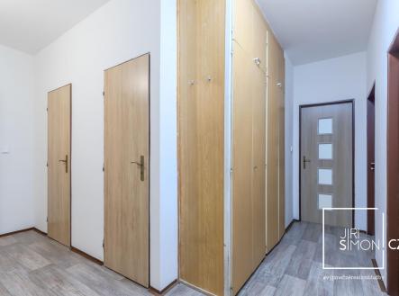 Byt se nachází v prvním patře (druhé nadzemní podlaží) bytového domu a obsahuje velký obývací pokoj, samostatnou kuchyň, dvě ložnici, koupelnu, wc a dva balkóny a garážové parkovací stání v podzemí domu. Jedná se o byt který právě prošel kompletní rekonstrukcí. Kromě vybavené kuchyně není vybavený, tak jak je vyobrazeno na fotografiích.