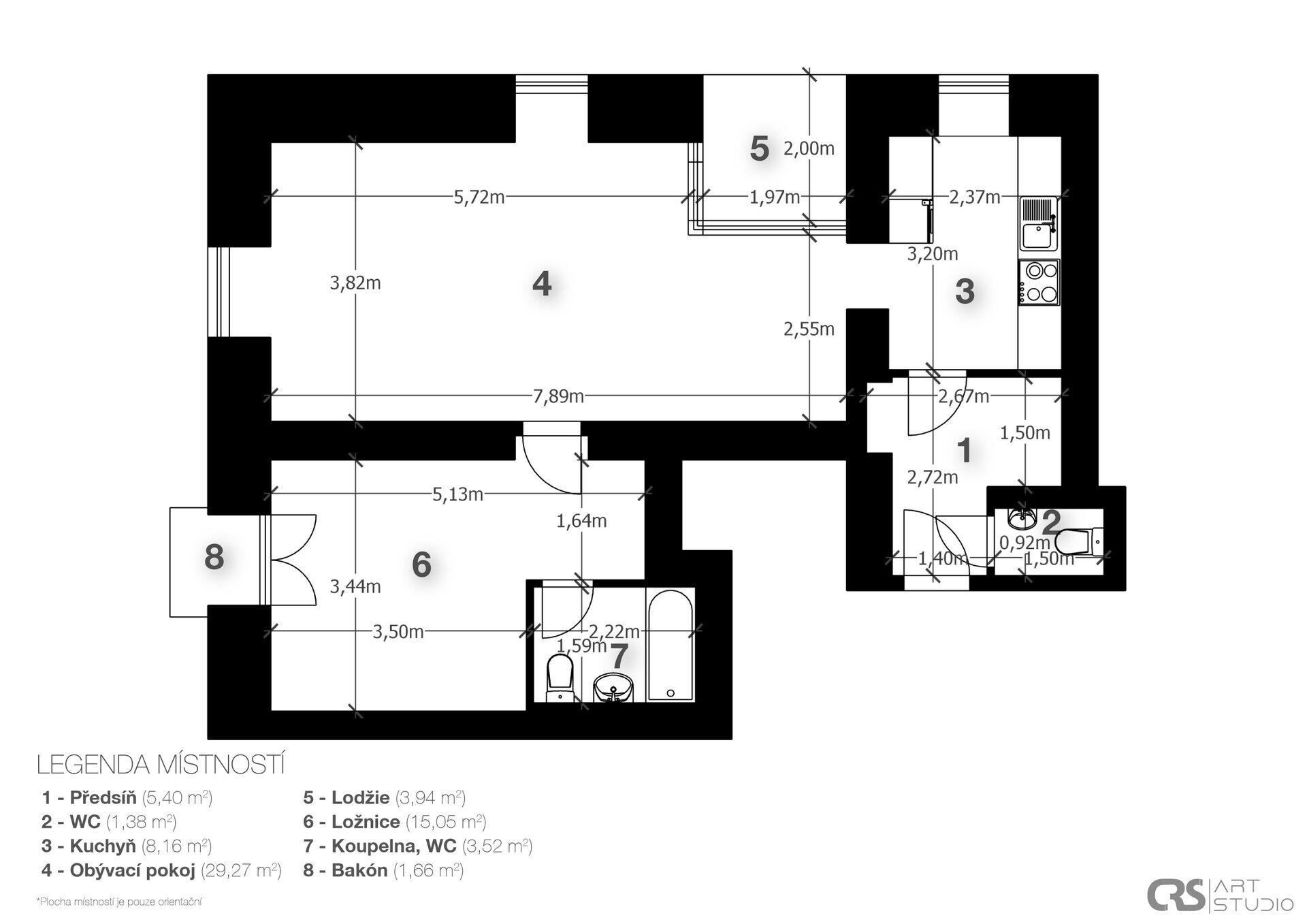 - Dispozice bytu:2+kk