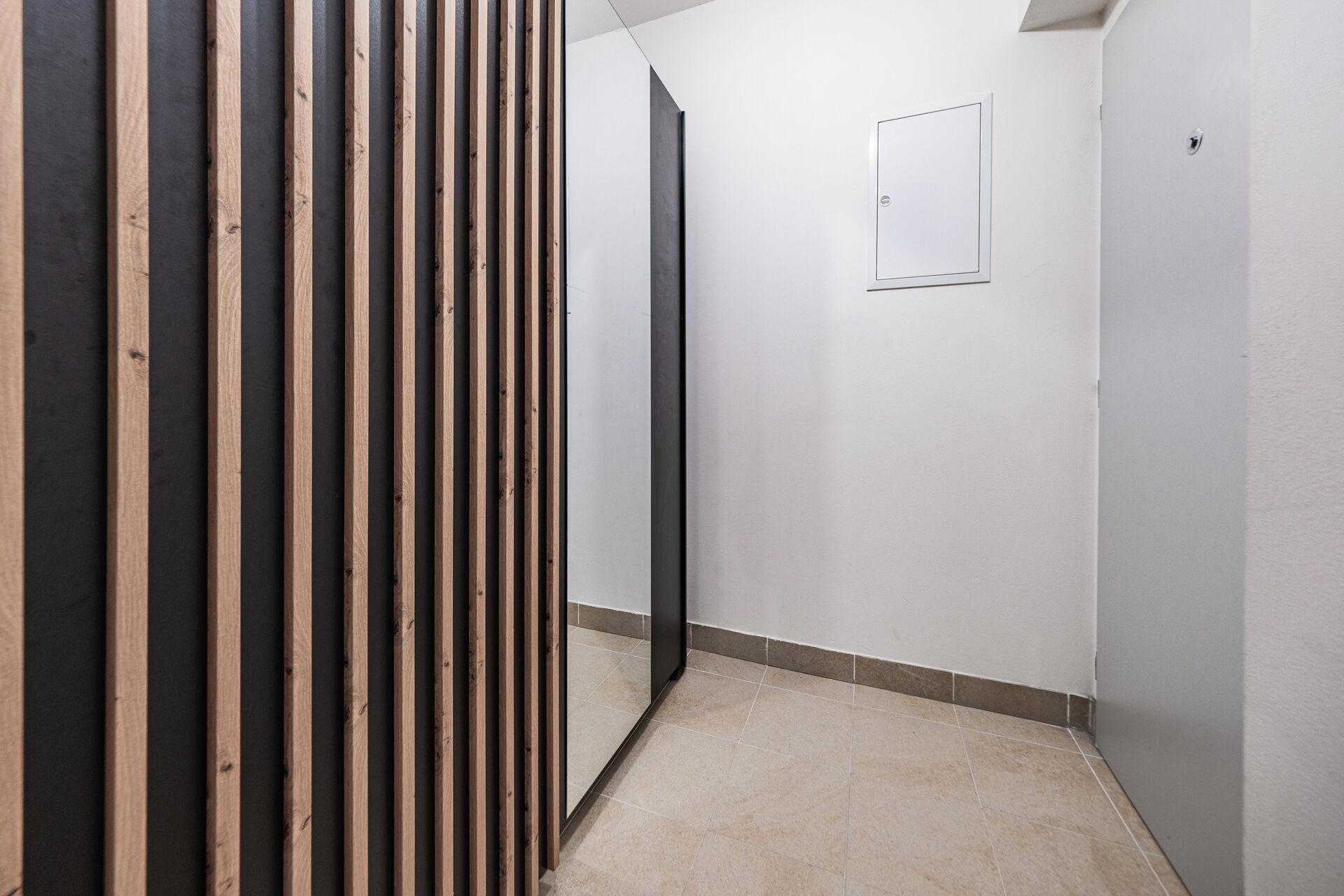 Nabízený byt se nachází ve 2. nadzemním podlaží cihlového domu a nabízí celkovou plochu 55,6 m², včetně zděného sklepa o velikosti 5,1 m². Dispozice bytu je prakticky řešená – světlý obývací pokoj s kuchyňským koutem, samostatná ložnice, koupelna s toaletou a předsíň tvoří příjemný a funkční celek. Veškerý nábytek je v celém bytě řešen truhlářem na míru, vše v nadstandardním provedení.