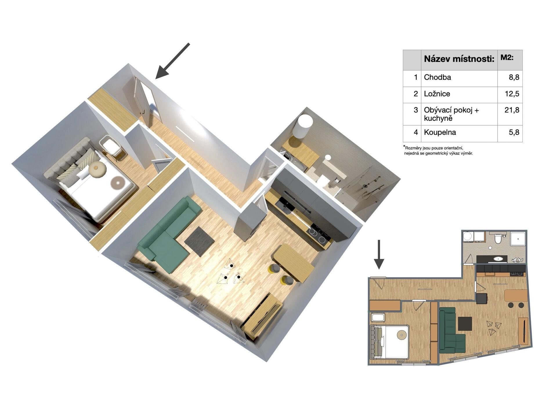 - Dispozice bytu:2+kk