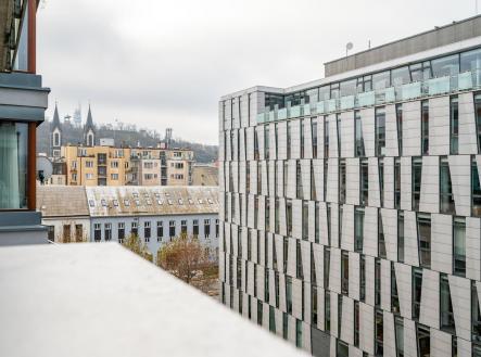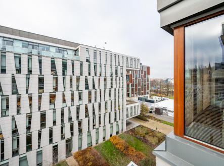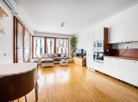 K pronájmu krásný byt 2+kk 60 m² s terasou 7 m², včetně garážového stání a sklepa 4 m², v luxusní rezidenci River Diamond, přímo v atraktivní lokalitě Karlín na Rohanském nábřeží.