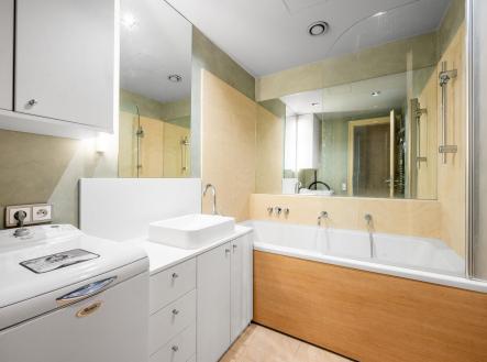 Cena včetně hlídaného garážového stání a sklepa 4 m². Vstup do objektu přes recepci s ostrahou.