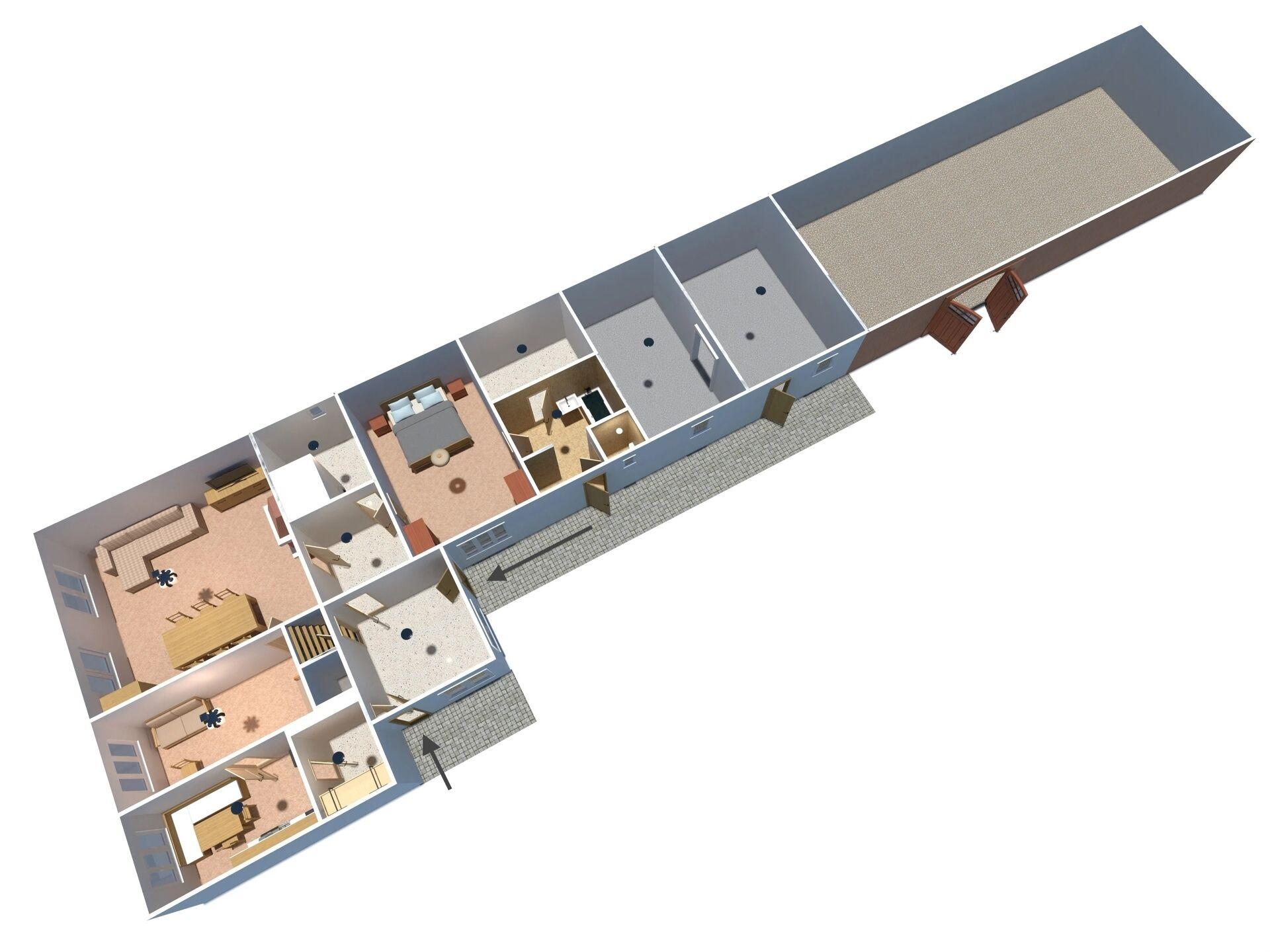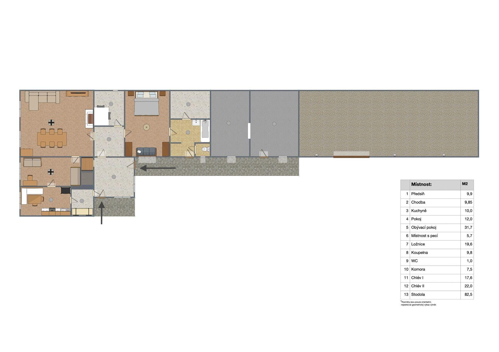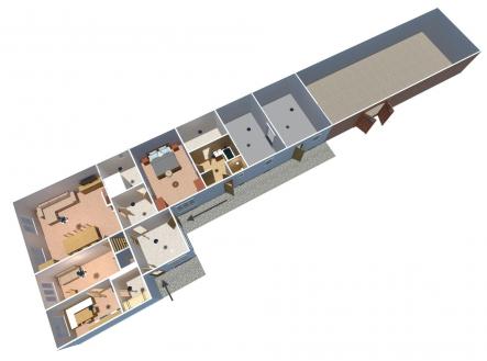 Nemovitost určená k rekonstrukci se skládá z 5 místností, chléva, stodoly a velkého půdního prostoru a dává prostor pro realizaci vlastních představ o jejím zrenovování a úpravě podle aktuálních potřeb (rodinný dům, penzion, ubytovna, statek)...
