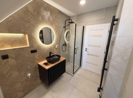 V koupelně se nachází sprcha, umyvadlo a toaleta. Díky praktickému rozložení pokojů nabízí byt dostatek soukromí i pohodlí pro každodenní provoz.