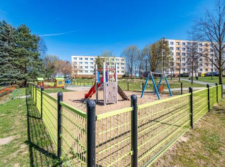 Nové dětské hřiště, kde se děti zabaví a Vy je máte na očích. Lokalita je přesně taková, jakou chcete pro běžný život.