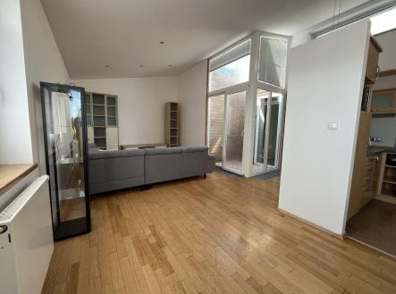 Nabízíme k pronájmu prostorný a světlý byt o dispozici 2+kk a velikosti 70 m², který je vhodný nejen k pohodlnému bydlení, ale také jako kancelářské prostory či ateliér.