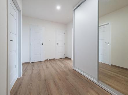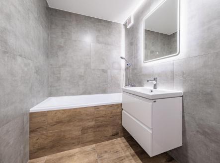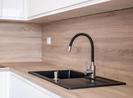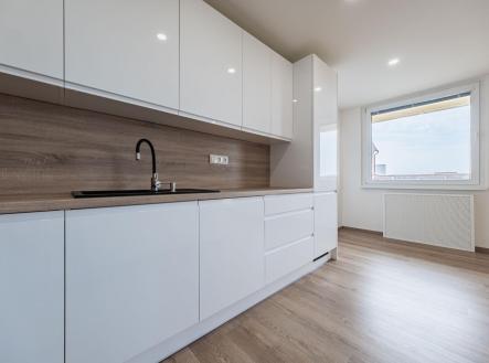 Samotný byt prošel kompletní a velmi zdařilou rekonstrukcí – vše je zde nové a připravené pro svého prvního majitele po rekonstrukci. Nové podlahy, kompletně řešené rozvody vody i elektřiny, zděné jádro s vanou, samostatná toaleta, moderní vestavná šatní skříň v prostorné vstupní chodbě. Kuchyňská linka na míru v bílém lesklém dekoru se spotřebiči je elegantně sladěná s pracovní deskou i podlahou a přirozeně navazuje na obývací část.